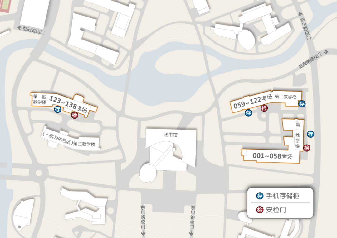 本考点设在华东师范大学闵行校区,考生可从4个校门进入考点: